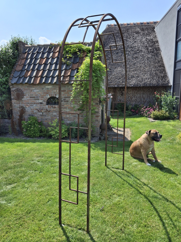 Doordat de rozenboog onbehandeld wordt geleverd, ontwikkelt deze vanzelf een prachtige, egale roestkleur die uw tuin een warme en karaktervolle uitstraling geeft.