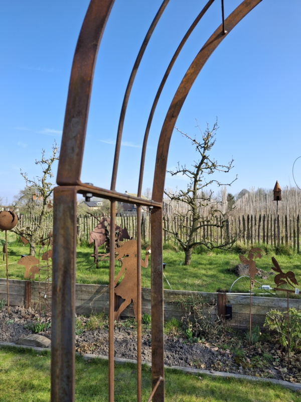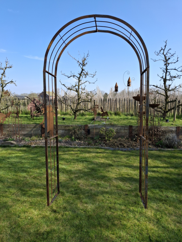 Doordat de rozenboog onbehandeld wordt geleverd, ontwikkelt deze vanzelf een prachtige, egale roestkleur die uw tuin een warme en karaktervolle uitstraling geeft.